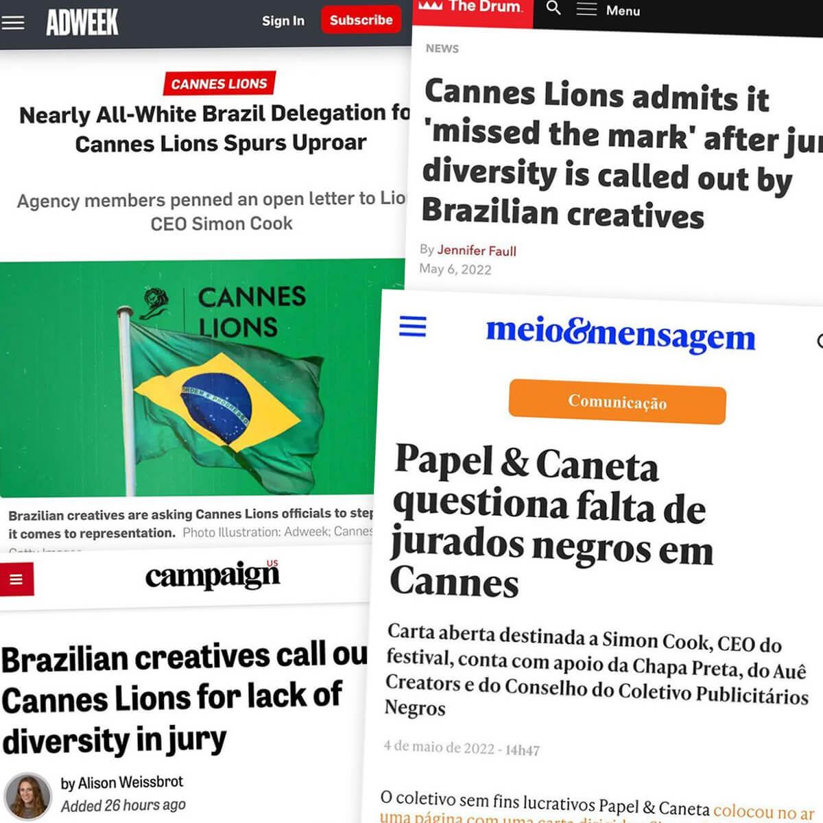 In 2022, we challenged the status quo. We sent an open letter to the CEO of Cannes Lions that garnered over 1,500 signatures in under 24 hours. Featured in Adweek, AdAge, Campaign, and The Drum, the letter called out a glaring disparity: out of 24 Brazilian jurors, only one was Black.