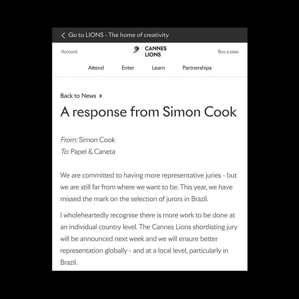 In a 2024 interview with the How I Became podcast, Cannes Lions CEO Simon Cook spoke publicly for the first time about just how much the letter shook things up at the Festival.