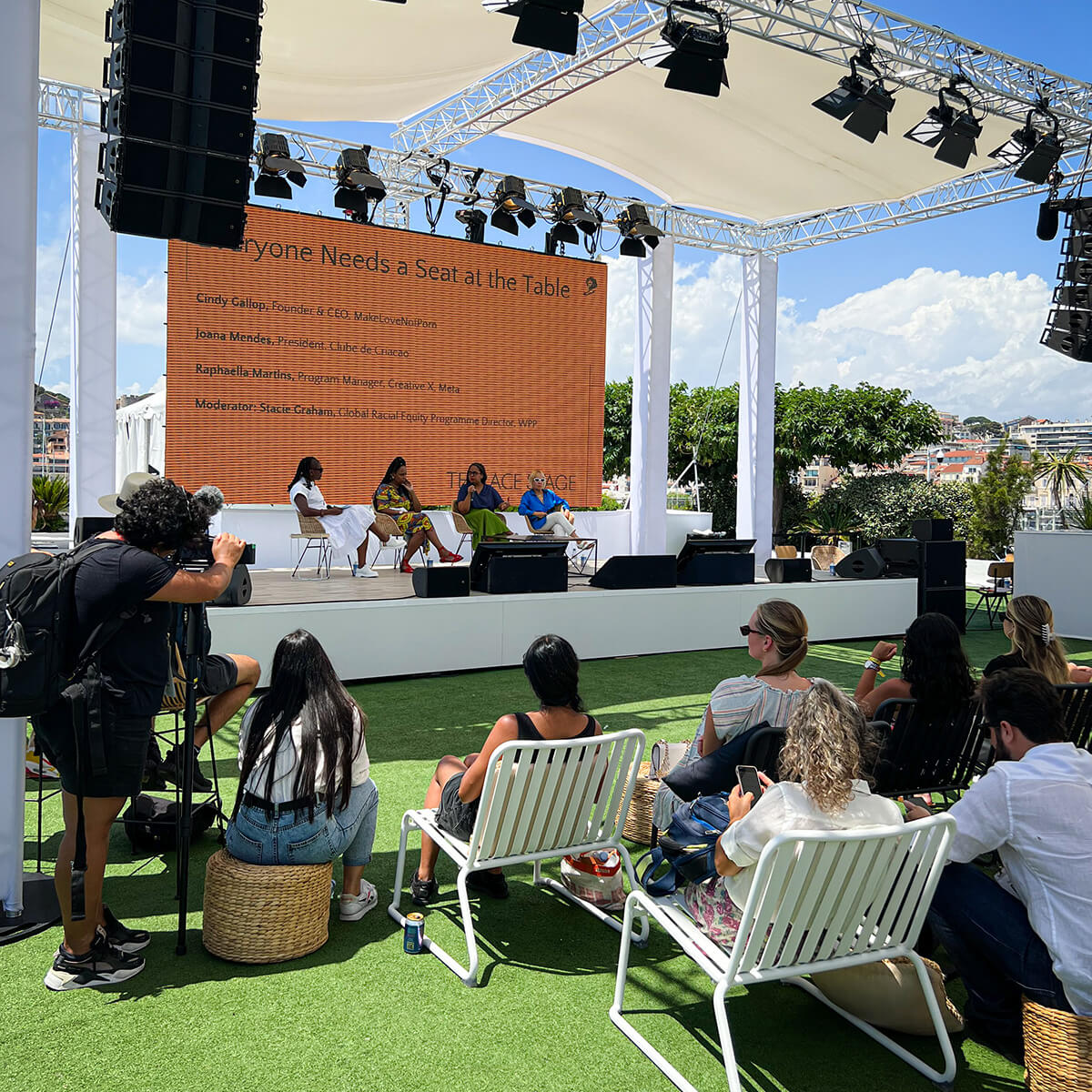 The impact was immediate. The festival recruited seven Black Brazilian professionals on the spot, hired its first-ever Diversity Director, and overhauled its jury recruitment process. Weeks later, we took the conversation to the main stage at Cannes, hosting a panel with Black Brazilian leaders Raphaella Martins and Joana Mendes, alongside our dear friend Cindy Gallop.